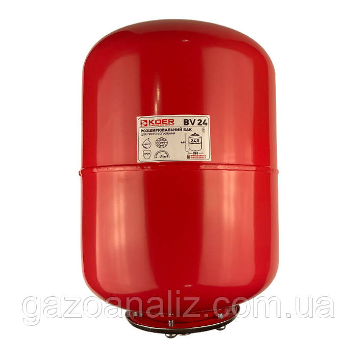 Круглий розширювальний бачок KOER BV24 об'ємом 24 літрів призначений для компенсації тимчасового надлишкового тиску та розширення теплоносія в системах опалення закритого типу загальною ємністю до 240 л